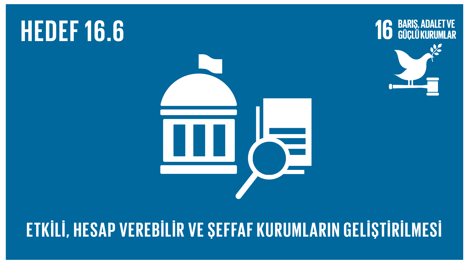 Sürdürülebilir kalkınma için barışçıl ve kapsayıcı toplumların desteklenmesi, herkes için adalete erişimin sağlanması ve her düzeyde etkili, hesap verebilir ve kapsayıcı kurumların inşası