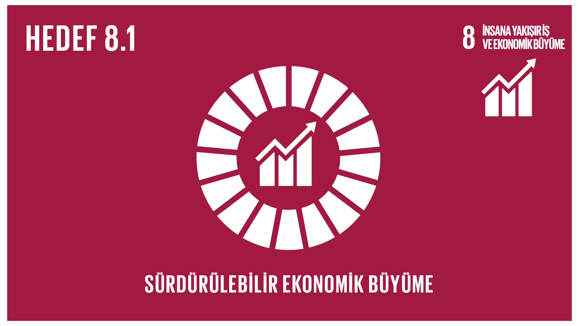 8.1. Kişi başına düşen gelir artışının ulusal koşullara uygun olarak sürdürülmesi ve özellikle en az gelişmiş ülkelerde gayri safi yurt içi hasılada yıllık en az yüzde 7 oranında büyüme olmasının sağlanması