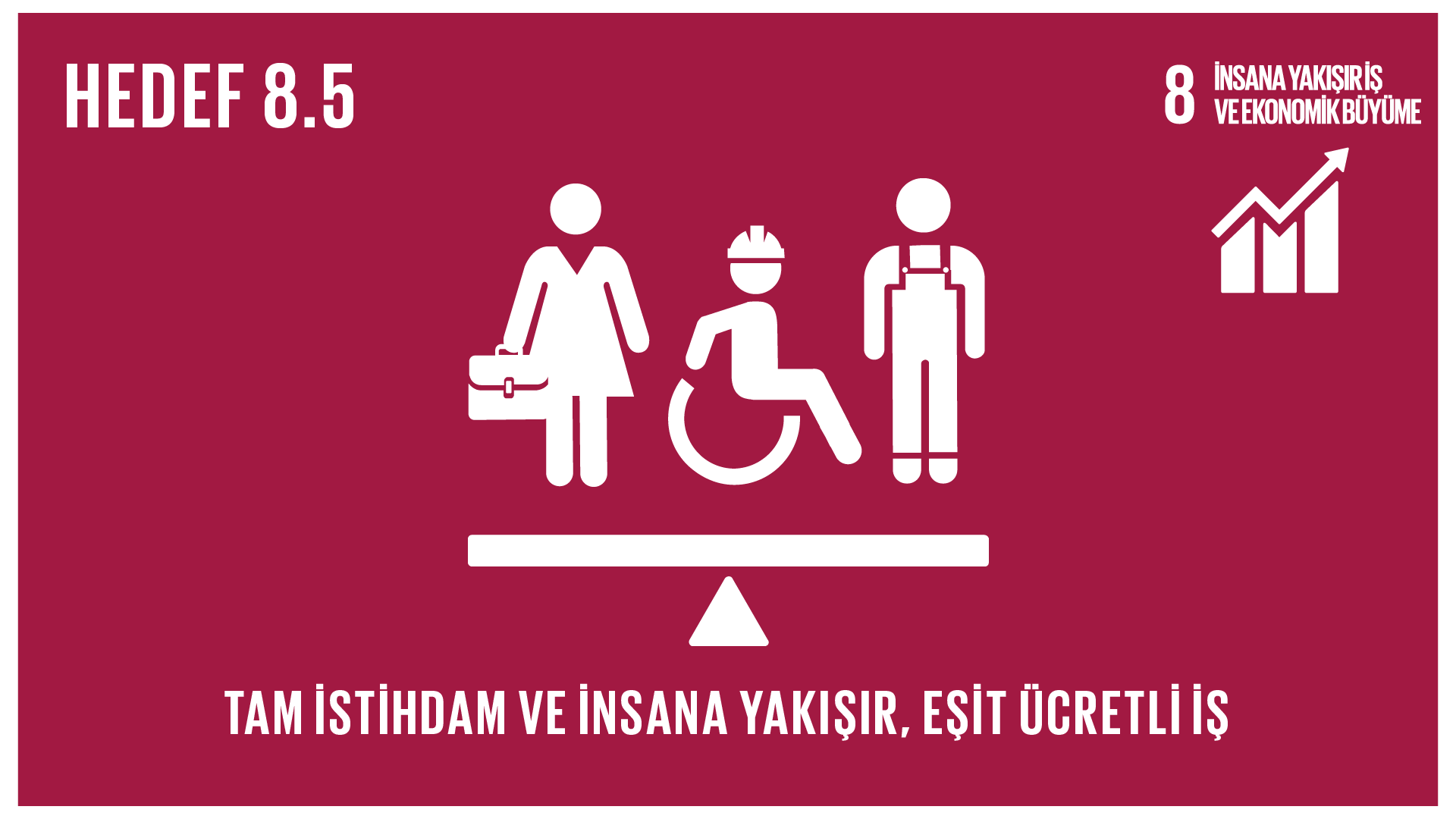 8.5. 2030’a kadar gençler ve engelliler de dâhil bütün kadın ve erkeklerin tam ve üretken istihdama ve insana yakışır işlere erişimlerinin sağlanması ve eşit işe eşit ücret ilkesinin tam olarak benimsenmesi8.4.2. Yurtiçi madde tüketimi, kişi başına yurt içi madde tüketimi ve GSYH başına yurt içi madde tüketimi