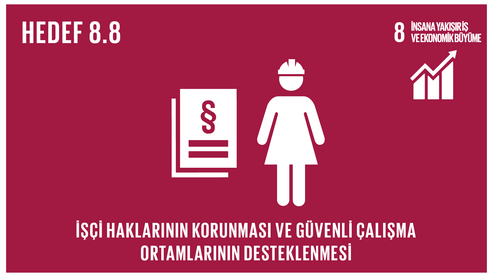 8.9. 2030’a kadar istihdam yaratan ve yerel kültür ve ürünlerini teşvik eden sürdürülebilir turizmin desteklenmesi için politikalar oluşturulması ve uygulanması8.8.2. Cinsiyet ve göçmenlik statüsüne göre, Uluslararası Çalışma Örgütü (ILO) metin kaynakları ve ulusal mevzuata dayalı olarak çalışma hakları mevzuatının uyumlulaştırılmasındaki artış (dernek ve toplu pazarlık özgürlüğü)