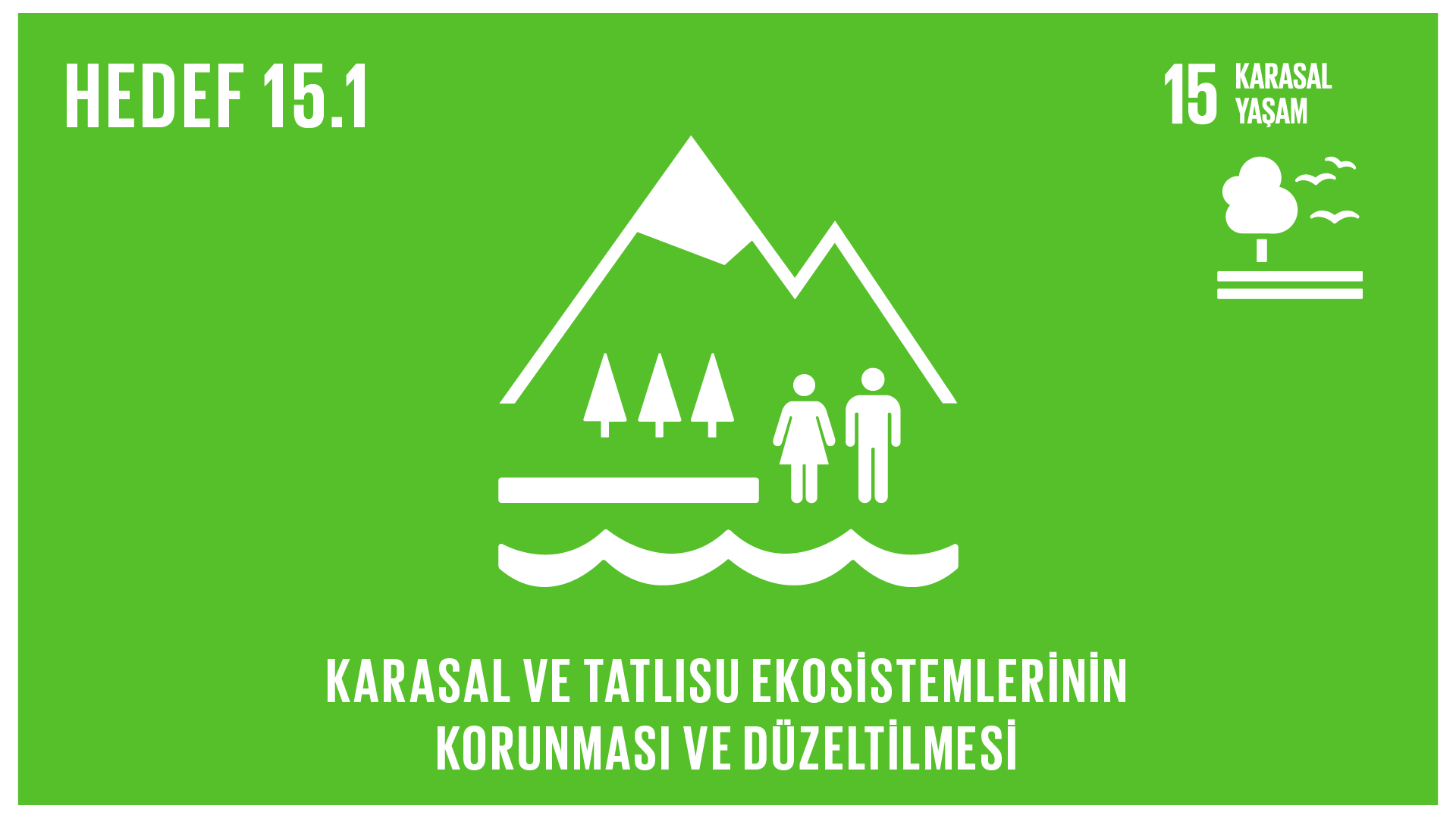 15.1. 2020’ye kadar özellikle ormanlarda, sulak alanlarda, dağlarda ve kurak alanlardaki karasal ve iç tatlısu ekosistemlerinin uluslararası anlaşmalardan doğan yükümlülükler doğrultusunda korunmasının, eski haline getirilmesinin ve sürdürülebilir kullanımının sağlanması