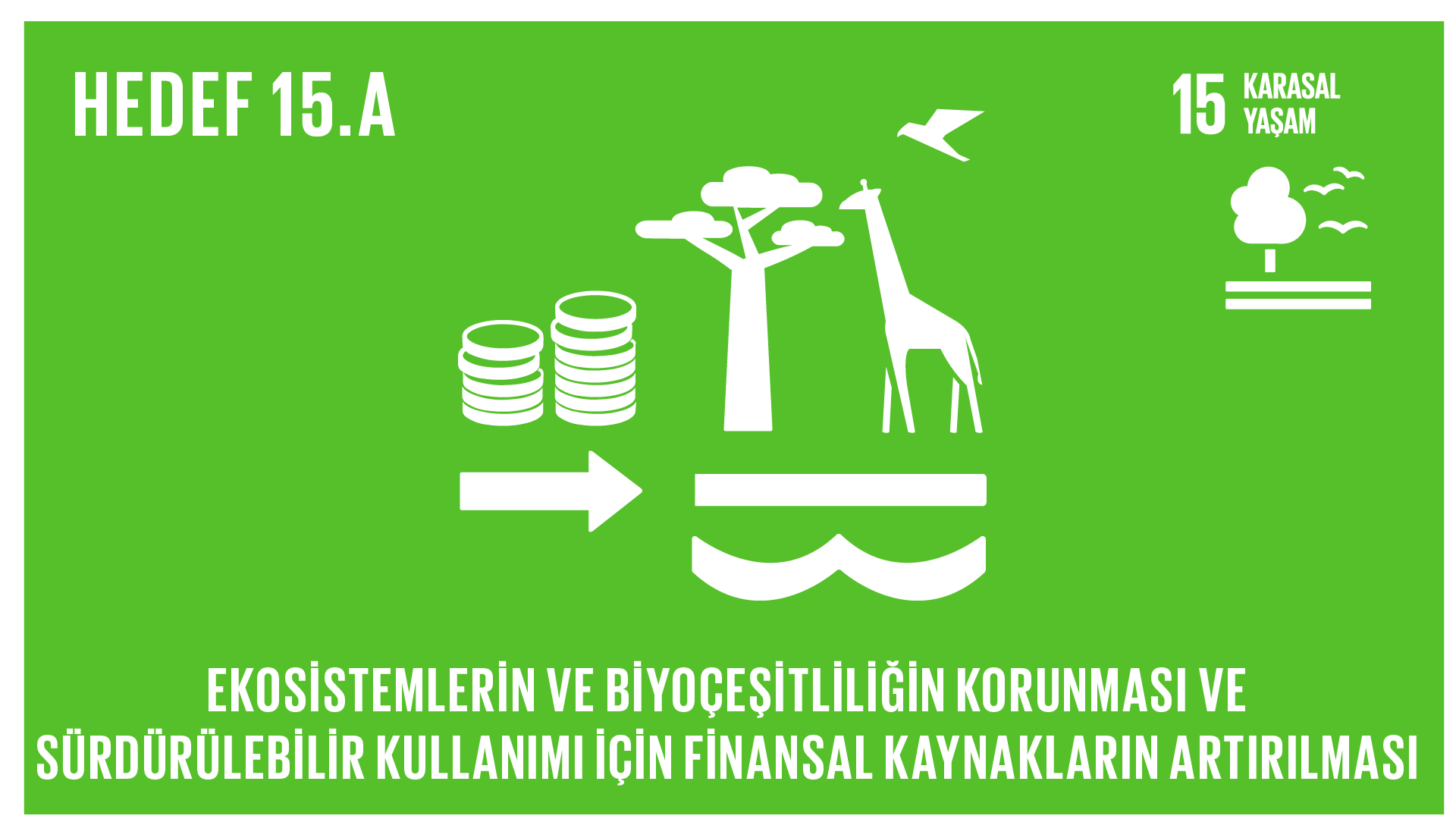 15.a Biyoçeşitliliği ve ekosistemleri korumak ve sürdürülebilir biçimde kullanmak için bütün kaynaklardan elde edilen finansal kaynakların seferber edilmesi ve önemli ölçüde artırılması15.a.1. Biyoçeşitlilik ve ekosistemlerin sürdürülebilir kullanımı ve korunması konusunda resmi kalkınma yardımı ve kamu harcamaları
