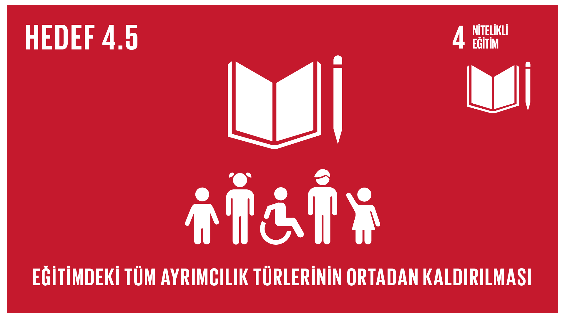 4.5. 2030’a kadar eğitim alanındaki toplumsal cinsiyet eşitsizliklerinin ortadan kaldırılması ve engelliler, yerliler ve kırılgan durumdaki çocuklar dâhil, kırılgan insanların her düzeyde eğitim ve mesleki eğitime eşit biçimde erişimlerinin sağlanması4.5.1. Bu listede ayrıştırılabilecek tüm eğitim göstergeleri için parite endeksleri (veri elverişliliğine bağlı olarak kadın/erkek, kır/kent, en alt/en üst servet %20'likleri ve engellilik durumu, yerli insanlar ve çatışmalardan etkilenenler gibi diğerleri)