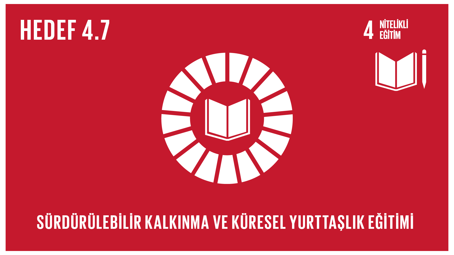 4.7. 2030’a kadar sürdürülebilir kalkınma ve sürdürülebilir yaşam tarzları için eğitim, insan hakları, toplumsal cinsiyet eşitliği, barış ve şiddete başvurmama kültürünün geliştirilmesi, dünya vatandaşlığı ve kültürel çeşitliliğin ve kültürün sürdürülebilir kalkınmaya katkısının takdiri yoluyla bütün öğrenciler tarafından sürdürülebilir kalkınmanın ilerletilmesi için gereken bilgi ve becerinin kazanımının sağlanması4.7.1. (i) Küresel vatandaşlık eğitiminin ve (ii) cinsiyet eşitliği ve insan hakları da dahil olmak üzere sürdürülebilir kalkınma için eğitiminin; (a) milli eğitim politikalarının, (b) müfredatın, (c) öğretmen eğitiminin ve (d) öğrenci değerlendirmenin tüm düzeylerinde yaygın hale gelmesi