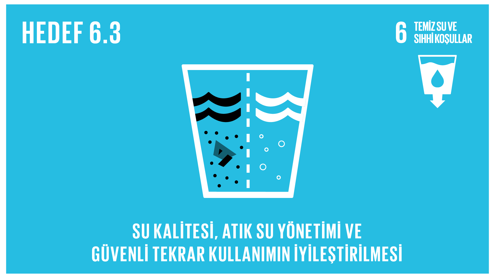 6.3. 2030’a kadar kirliliği azaltarak, çöp boşaltmayı ortadan kaldırarak, zararlı kimyasalların ve maddelerin salınımını en aza indirgeyerek, arıtılmamış atık su oranını yarıya indirerek ve geri dönüşümü ve güvenli tekrar kullanımı küresel olarak ciddi ölçüde artırarak su kalitesinin yükseltilmesi6.3.1. Güvenilir şekilde arıtılmış atıksu oranı