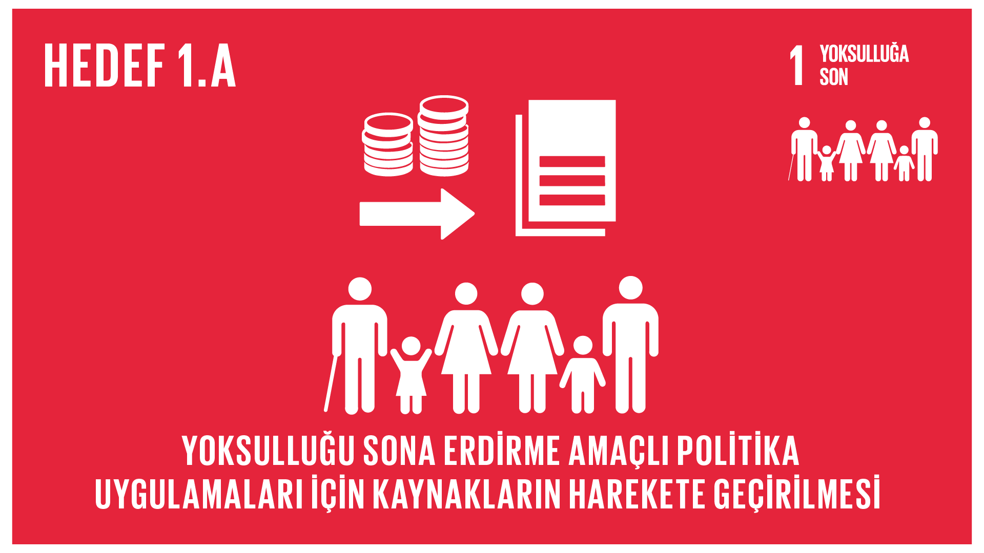 1.a. Özellikle en az gelişmiş ülkeler olmak üzere, gelişmekte olan ülkelerin yoksulluğu bütün boyutlarıyla sona erdirmek adına programlar ve politikalar uygulayabilmeleri için onlara yeterli ve öngörülebilir araçlar sunmak amacıyla, geliştirilmiş kalkınma işbirliği aracılığıyla, çeşitli kaynaklardan kaynakların yönlendirilmesinin büyük ölçüde sağlanması1.5.2. Afetlerin yol açtığı doğrudan ekonomik kayıplar Küresel GSYH'ye oranı